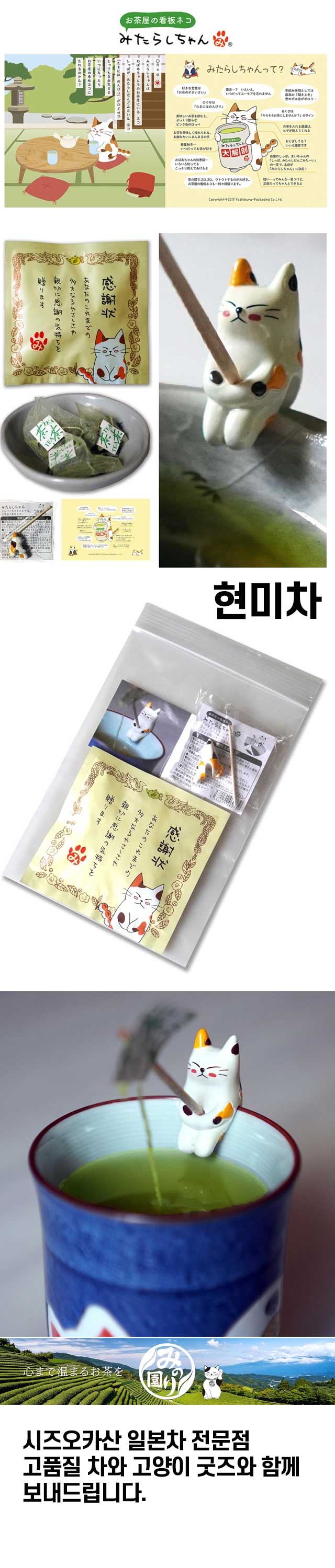 네코차 말차 함유 현미차 티백 3포 고양이 캐릭터 ‘미타라시짱’ 굿즈 포함