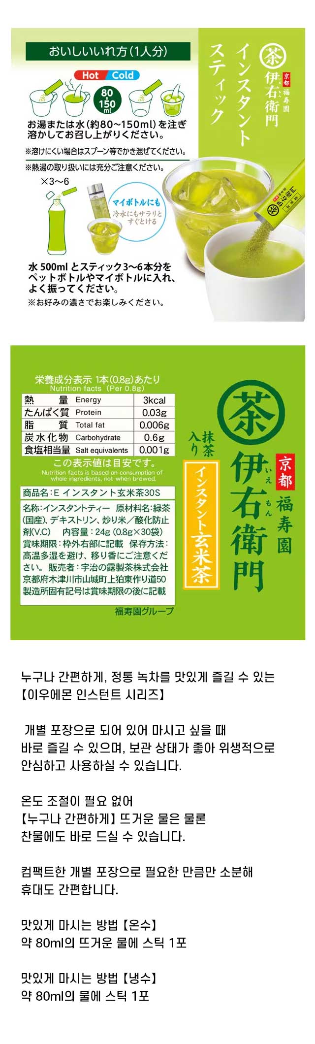> 우지노츠유 이우에몬 인스턴트 현미차 스틱 0.8g × 30포 × 3개