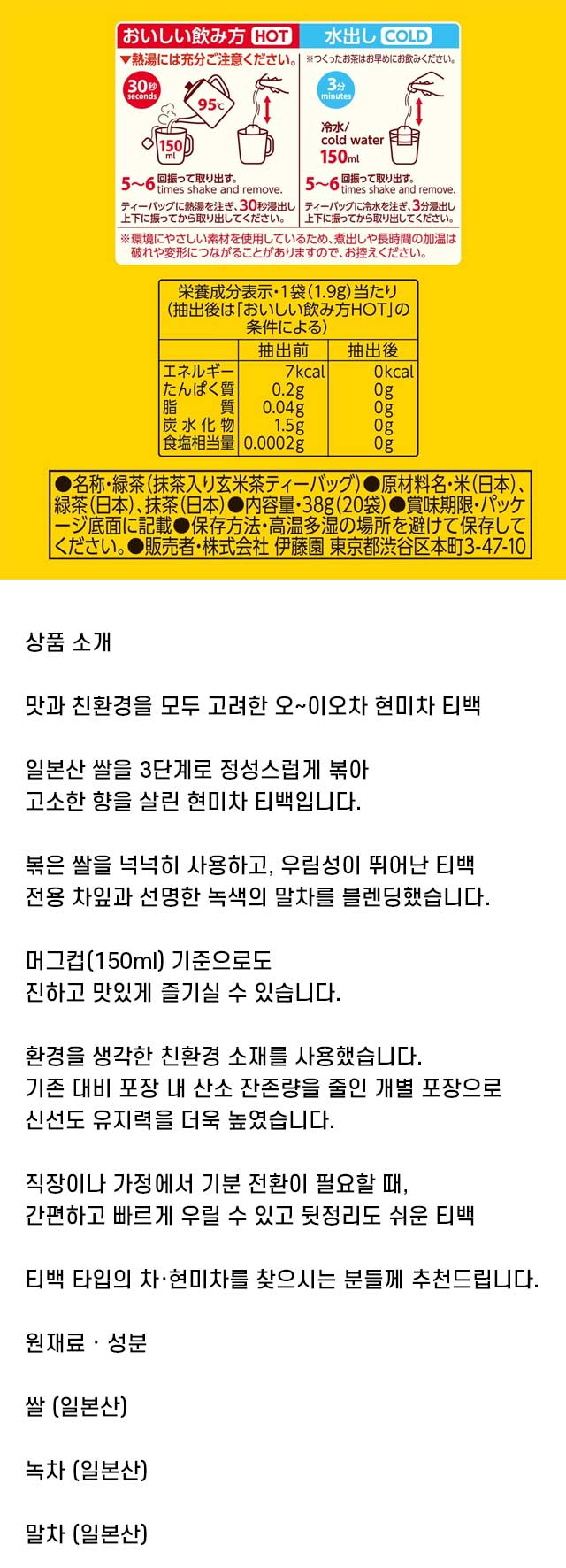 > 이토엔 오~이오차 현미차 에코 티백 1.9g × 20포
