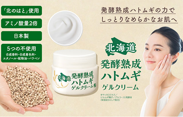 홋카이도 나요로산 하토무기¹를 발효·숙성해 아미노산 함량을 약 2배 높인 겔 크림. 올인원 보습으로 촉촉하고 매끈한 피부결을 완성합니다. 끈적임 없이 산뜻해 얼굴은 물론 목·바디까지 사용하기 좋아요.