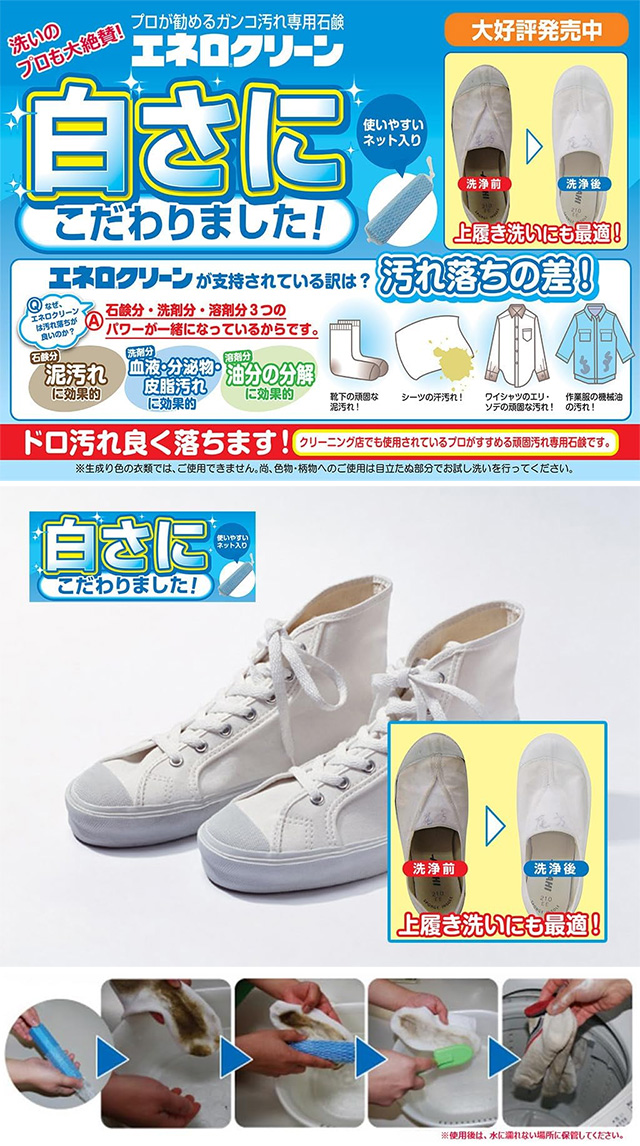에네로클린 M1은 전문가가 추천하는 찌든 때 전용 세탁용 막대비누입니다.