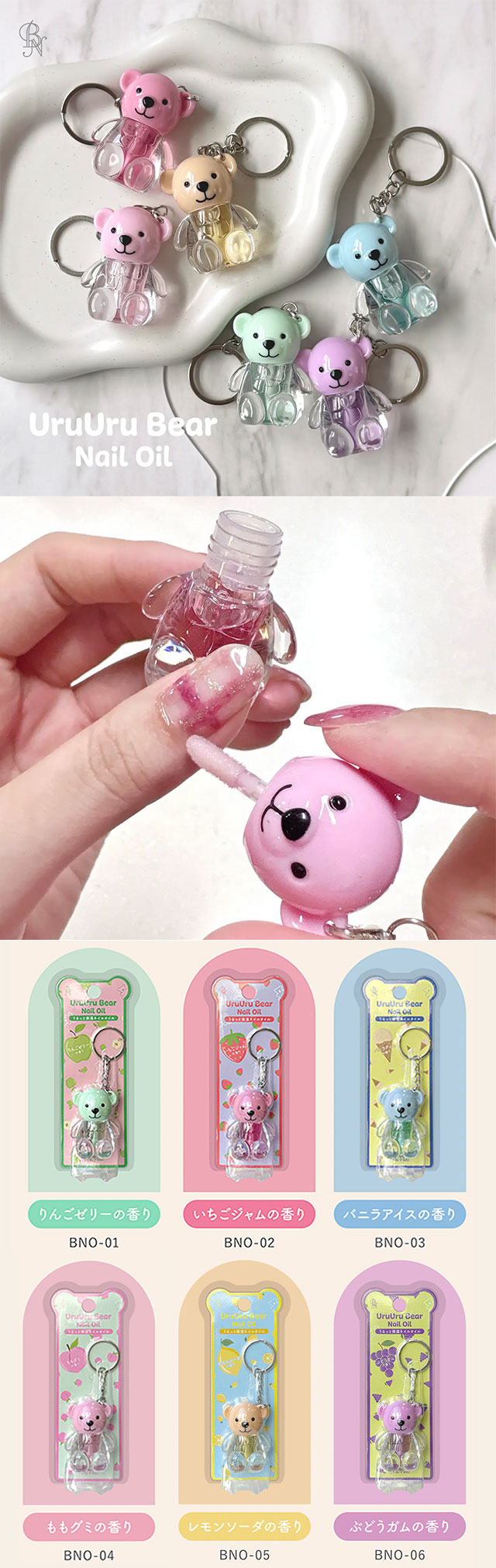 귀여운 곰 모양 디자인의 네일 오일로,