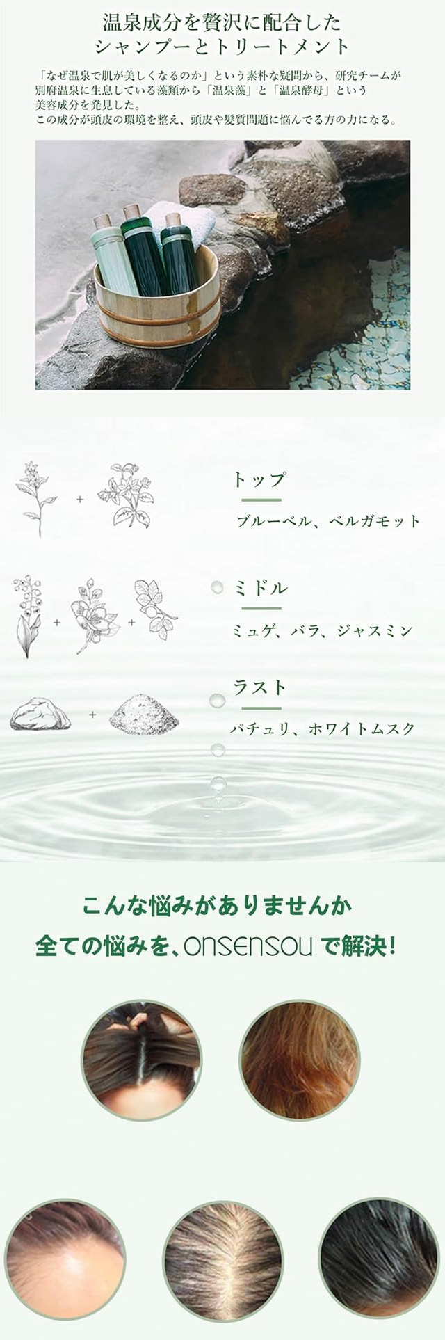 - home > 뷰티/화장품 > 헤어/두피/육모 > 헤어 세트 > ONSENSOU 온센소우 벳푸 온천 조류 함유 두피 케어 샴푸&트리트먼트 300ml 2종 1세트
