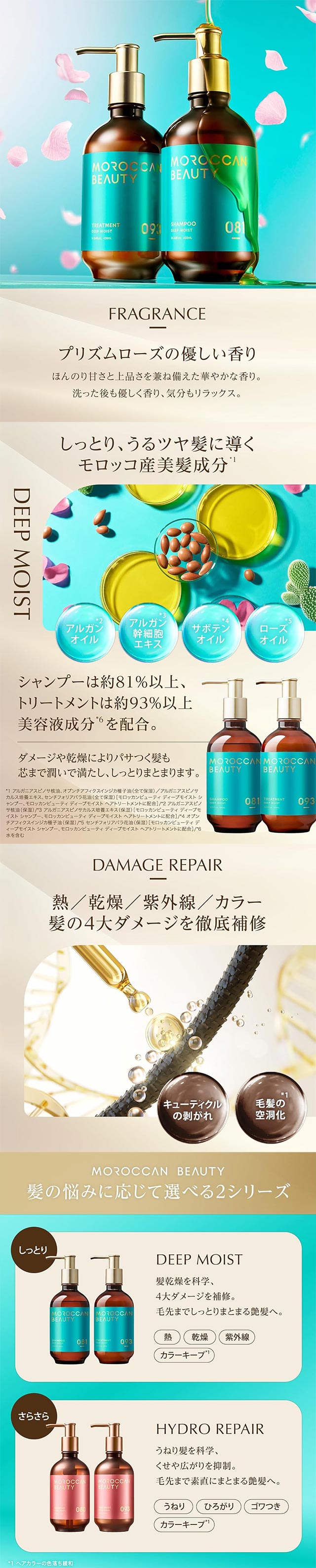 건조하고 손상된 모발에 깊은 보습을 채워주는 딥 모이스트 라인의 샴푸 & 트리트먼트 세트.