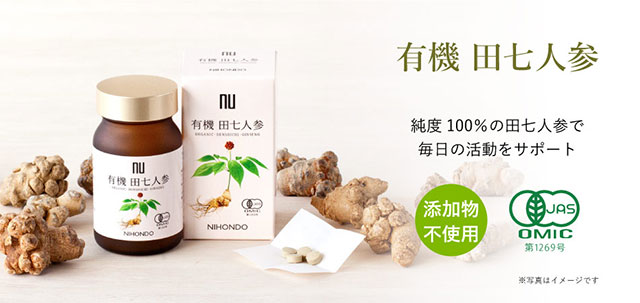 유기 JAS 인증을 받은 전칠인삼 100% 원료만 사용한 정제형 서플리먼트입니다.