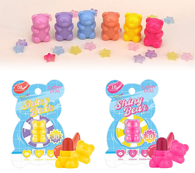 귀여운 곰돌이 모티브 패키지의 미니 립스틱 촉촉한 윤기를 오래 유지해 줍니다.