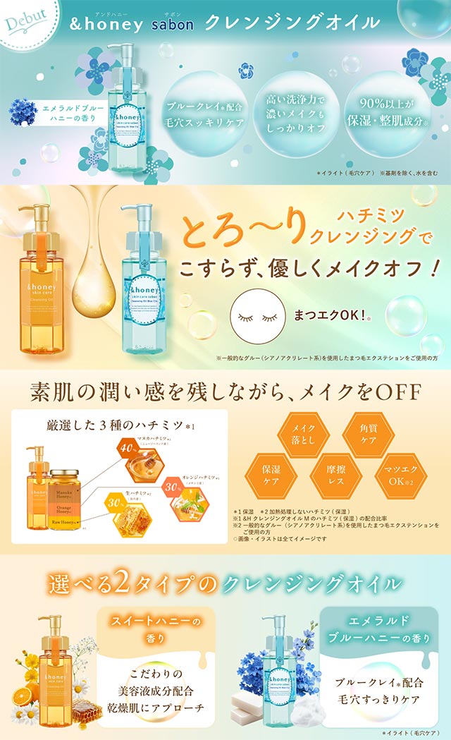 꿀 유래 보습 성분과 식물성 오일을 함유한 앤드허니 클렌징 오일. 메이크업과 피지, 노폐물을 부드럽게 녹여내며 세안 후에도 촉촉함을 유지해주는 보습 클렌징 아이템입니다.