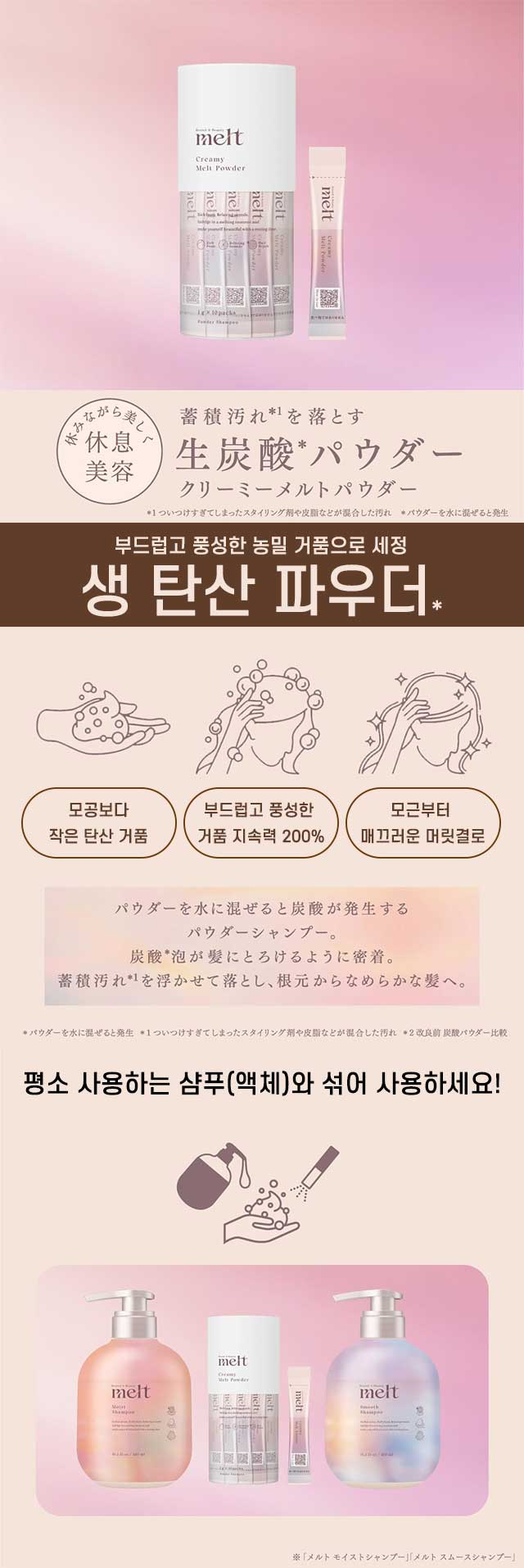 - home > 뷰티/화장품 > 헤어/두피/육모 > 두피/육모/탈모케어 > 멜트(melt) 크리미 멜트 파우더 생탄산 헤드스파 탄산 파우더 1g×10포