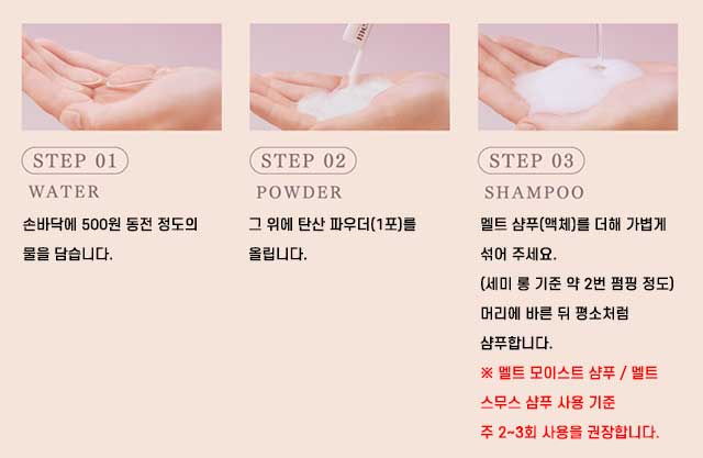 🔹 특징 ・물을 섞으면 생성되는 생탄산 거품이 두피와 모발의 축적 노폐물을 부드럽게 제거 ・모공보다 작은 탄산 거품과 거품 지속력 200%로 두피를 깨끗하게 클렌징 ・트리트먼트 흡수를 돕는 부스터 효과로 더욱 매끄러운 머릿결 완성