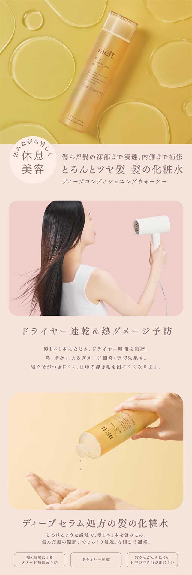 - home > 뷰티/화장품 > 헤어/두피/육모 > 헤어오일/크림/미스트 > 멜트(melt) 컨디셔닝 워터 헤어 토너 170ml 워터릴리 & 우드 향 (헤어 워터 / 헤어 트리트먼트)