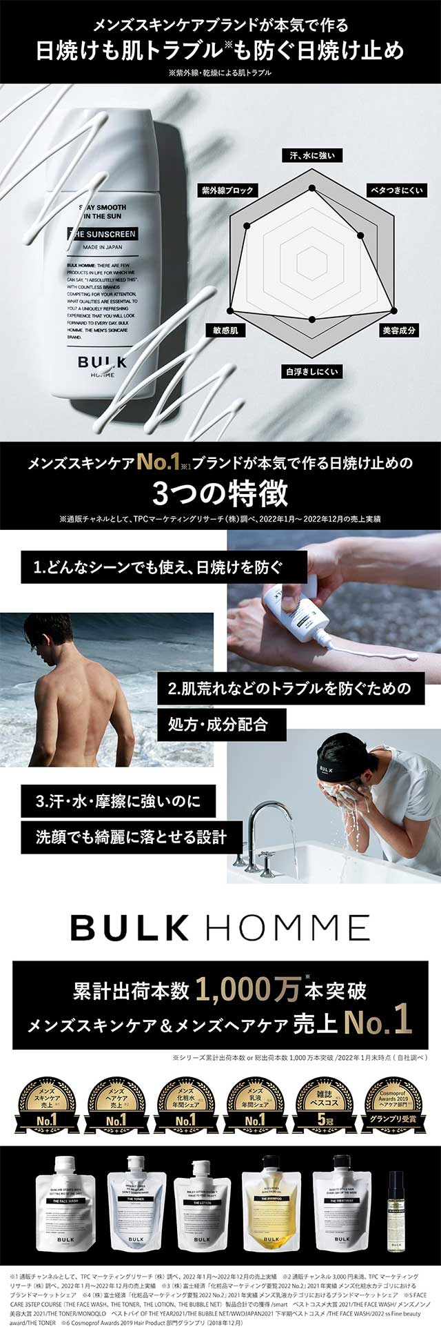 피부를 고려한 스킨케어 발상으로 개발된 남성용 선크림입니다.