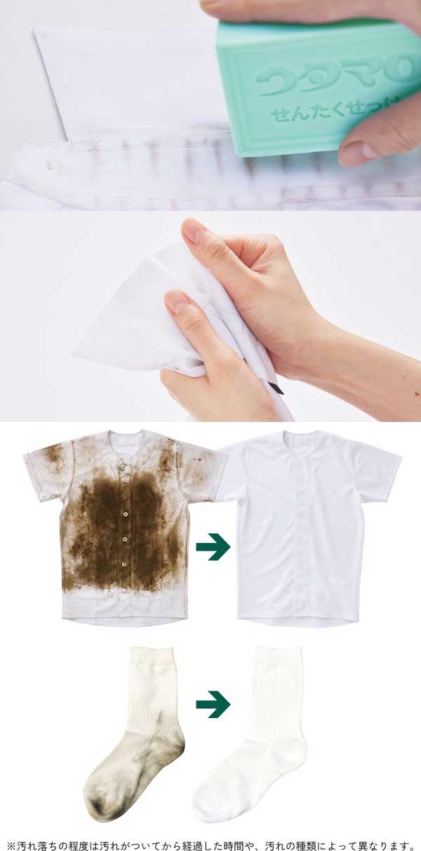 옷깃, 소매 등 부분 얼룩 제거에 효과적인 일본 인기 세탁 비누입니다.
