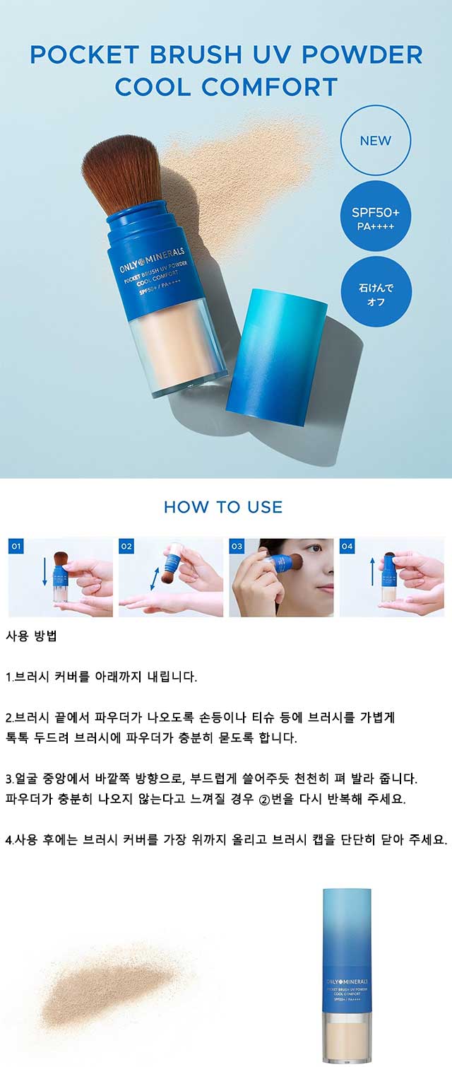 온리 미네랄 ONLY MINERALS 포켓 브러시 UV 파우더 쿨 컴포트 EX01 내추럴 SPF50+ PA++++ 3g (기간한정)