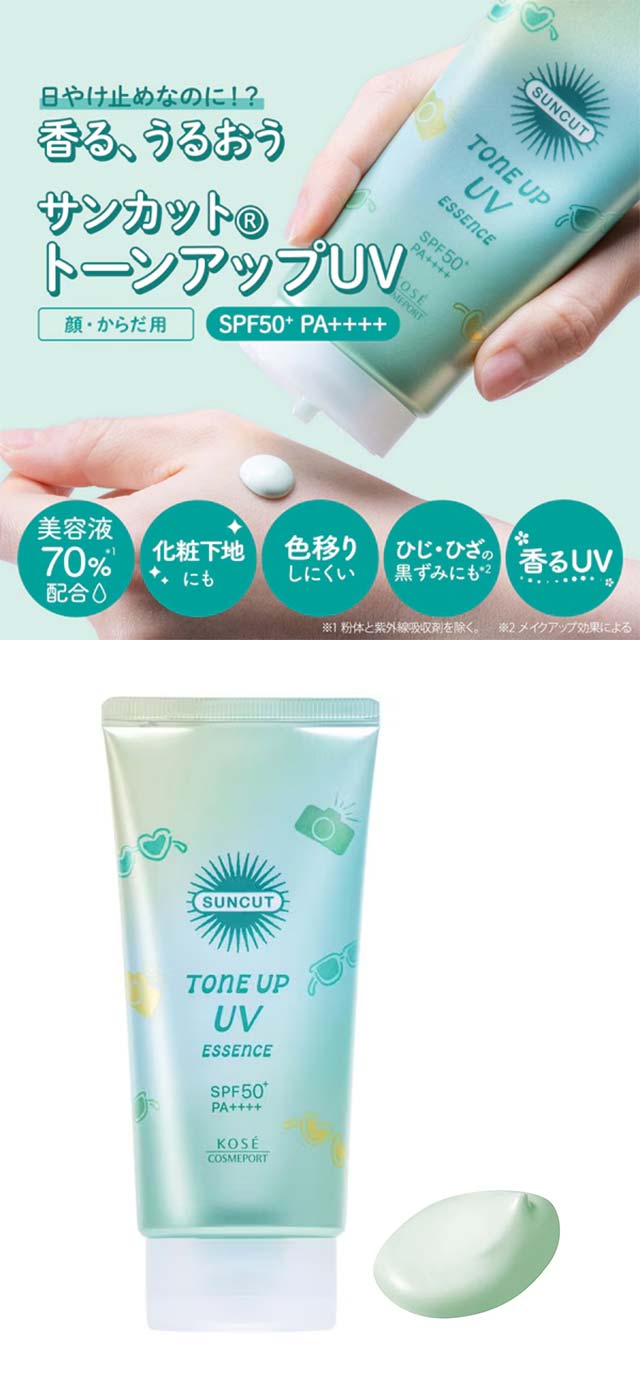 민트 그린 컬러로 피부의 붉은기를 자연스럽게 보정해 맑고 투명한 피부 톤을 연출해주는 톤업 UV 에센스입니다. 촉촉한 에센스 제형이 피부에 부드럽게 밀착되어 자외선 차단과 동시에 피부 케어를 도와줍니다.