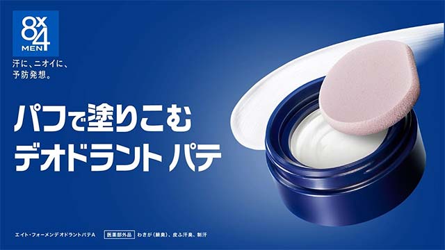 퍼프로 모공까지 밀착 발라 땀과 냄새를 강력하게 케어하는 남성용 파테 타입 데오드란트.