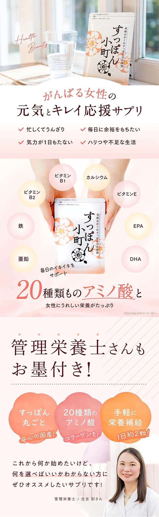 사가현산 고급 식재료 하가쿠레 자라를 통째로 사용한 영양 보충 서플리먼트입니다. 필수 아미노산 20종과 콜라겐, 비타민, 미네랄을 균형 있게 함유하여 바쁜 일상 속 여성의 건강과 아름다움을 지원합니다. 🔹 상세 정보 ・내용량: 62정 (약 1개월분) ・품목명: 건강기능식품 / 영양보충 서플리먼트 ・패키지 크기: 14.3 × 10.7 × 1 cm ・원재료: 자라 분말(사가현산), 콜라겐, DHA, EPA, 아연, 철분, 비타민B1, 비타민B2 등 ・원산지: 일본 🔹보관방법 ・직사광선을 피해 서늘하고 건조한 곳에 보관하세요. ・어린이의 손이 닿지 않는 곳에 보관하세요. ・개봉 후에는 밀봉하여 보관하세요. 🔹 정보 ・사가현산 하가쿠레 자라를 통째로 사용한 영양 보충 캡슐 → 바쁜 여성의 건강과 아름다움을 지원하는 자라 서플리먼트 🔹 복용 방법 ・하루 2정을 물과 함께 섭취하는 것을 권장합니다. ・씹지 말고 충분한 물과 함께 섭취하세요. ・섭취량은 개인 상태에 따라 조절할 수 있습니다. ・건강 보조 식품으로 꾸준한 섭취를 권장합니다. 🔹 특징 ・사가현산 고급 자라를 통째로 사용 ・필수 아미노산 20종 함유 ・콜라겐, DHA, EPA, 비타민 및 미네랄 함유 ・인공 보존료 무첨가 ⚠️ 주의사항 ・원재료에 알레르기가 있는 경우 섭취를 피하세요. ・임신 중이거나 질환이 있는 경우 전문가와 상담 후 섭취하세요. ・과다 섭취는 피하고 권장량을 지켜주세요. ・이상 증상이 나타날 경우 섭취를 중단하세요.