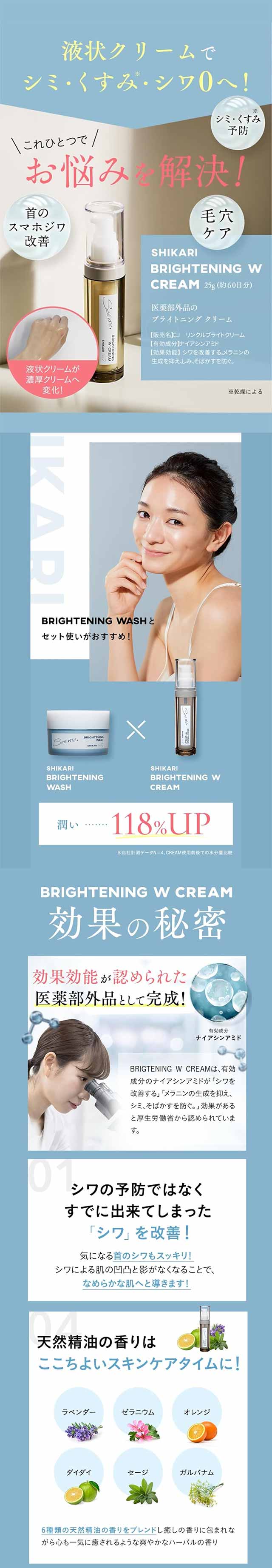 미백과 주름 개선을 동시에 케어하는 약용 기능성 크림. 수분 증발을 막아주며 피부를 보호하고, 탄력 있고 밝은 피부로 가꿔주는 집중 보습 크림. 🔹 상세 정보 ・내용량: 25g (약 60일분) ・품목명: 약용 기능성 크림 ・원재료: 나이아신아마이드, 글루타치온, 히알루론산, 콜라겐, 식물 추출물, 스쿠알란, 해바라기 오일 등 ・원산지: 일본 🔹 보관방법 ・직사광선을 피해 서늘한 곳에 보관 ・고온 및 저온 환경을 피할 것 ・사용 후 캡을 닫아 보관 ・유아의 손이 닿지 않는 곳에 보관 🔹 사용방법 ・에센스 사용 후 적당량(1펌프)을 덜어 사용 ・얼굴 전체에 부드럽게 펴 바름 ・건조하거나 주름이 신경 쓰이는 부위는 덧발라 사용 ・손으로 감싸듯 흡수시켜 마무리 🔹 정보 ・텍스처: 부드럽게 밀착되는 리치 크림 타입 → 수분을 잡아주는 탄력 보습 케어 🔹 특징 ・나이아신아마이드로 미백 & 주름 개선 기능 ・글루타치온 함유로 맑은 피부톤 케어 ・보습 오일 30% 함유로 깊은 보습 유지 ・무첨가 처방 (파라벤, 알코올, 합성향료 등 무첨가) ⚠️ 주의사항 ・피부 이상 시 사용 중지 ・눈에 들어가지 않도록 주의 ・사용 중 붉어짐, 가려움 발생 시 사용 중단 ・고온/저온 및 직사광선 보관 금지