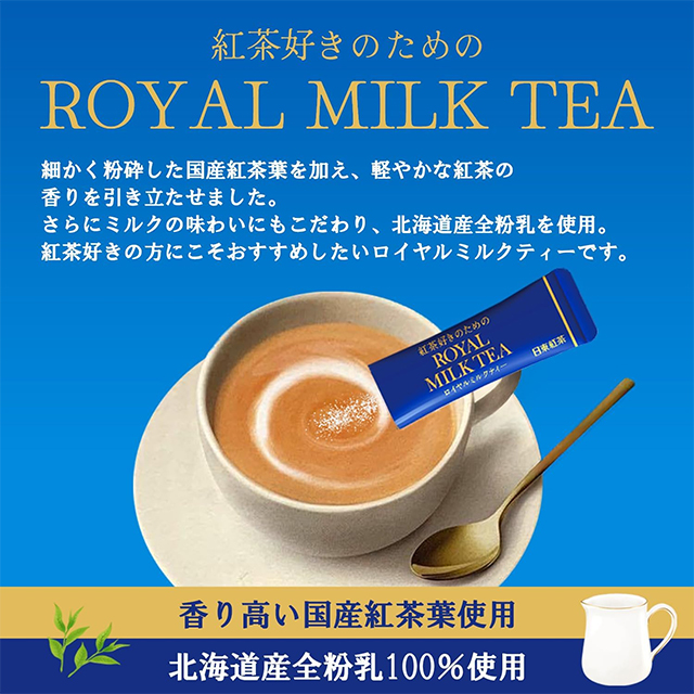 홍차를 좋아하는 분들을 위한 깊고 부드러운 로얄 밀크티. 뜨거운 물에 간편하게 녹여 즐길 수 있는 스틱형 분말 음료입니다. 🔹 상세 정보 ・내용량: 30포 (스틱형) ・품목명: 분말차 (밀크티) ・원재료: 설탕 외 ・원산지: 일본 🔹 보관방법 ・직사광선을 피하고 서늘한 곳에 보관 ・고온 다습한 장소는 피해서 보관 ・개봉 후에는 빠른 시일 내 섭취 ・습기 유입을 방지하여 보관 🔹 마시는 방법 ・스틱 1포를 컵에 넣기 ・뜨거운 물을 부어 잘 저어 섭취 ・기호에 따라 물 양 조절 가능 ・차갑게도 즐길 수 있음 🔹 정보 ・부드럽고 진한 밀크티 풍미 (달콤하고 깊은 홍차 맛) → 집에서도 카페처럼 즐기는 로얄 밀크티 🔹 특징 ・스틱형 개별 포장으로 휴대 및 보관 편리 ・뜨거운 물에 바로 녹는 간편한 분말 타입 ・30포 대용량으로 넉넉한 구성 ・부드러운 밀크와 홍차의 밸런스 ⚠️ 주의사항 ・제품 성분은 제조사 사정에 따라 변경될 수 있음 ・알레르기 체질은 원재료 확인 후 섭취 ・개봉 후에는 가능한 빨리 섭취 권장 ・본 제품은 질병 치료 목적의 제품이 아닙니다