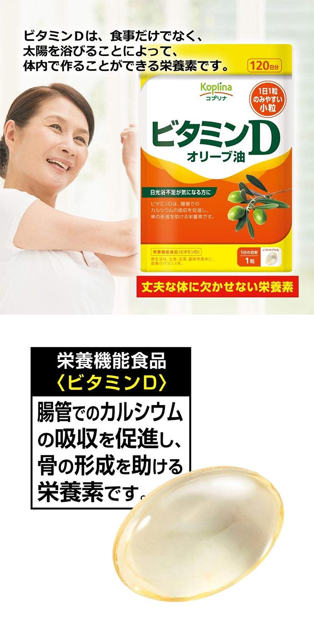 햇빛 부족으로 부족해지기 쉬운 비타민D를 간편하게 보충할 수 있는 데일리 영양 보충제입니다. 뼈 건강과 컨디션 관리에 도움을 주는 기본 필수 영양소를 손쉽게 챙길 수 있습니다. 🔹 상세 정보 ・내용량: 120정 (120일분) ・품목명: 비타민D 함유 가공식품 ・패키지 크기: 약 1.5 × 15 × 18 cm ・원재료: 올리브유(국내 제조), 젤라틴 / 글리세린, 비타민D₃ ・원산지: 일본 🔹 보관방법 ・직사광선을 피하고 서늘한 곳에 보관 ・고온다습한 환경을 피해 보관 ・개봉 후에는 밀봉하여 보관 ・어린이 손이 닿지 않는 곳에 보관 🔹 복용방법 ・1일 1정을 기준으로 섭취 ・물과 함께 섭취 권장 ・꾸준한 섭취 권장 ・과다 섭취는 피해주세요 🔹 정보 ・무향 – 부담 없이 깔끔한 섭취감 → 햇빛 부족을 채워주는 데일리 비타민 루틴 🔹 특징 ・1일 1정으로 비타민D 5.0μg 보충 ・일광 부족 시 간편하게 영양 보충 가능 ・소프트캡슐 형태로 편안한 섭취 ・GMP 인증 일본 국내 공장에서 생산 ⚠️ 주의사항 ・임신 중, 수유 중인 분은 섭취를 삼가주세요 ・약 복용 중이거나 치료 중인 경우 전문의와 상담 후 섭취 ・유아 및 어린이의 섭취는 권장하지 않습니다 ・젤라틴 알레르기가 있는 분은 섭취에 주의 바랍니다