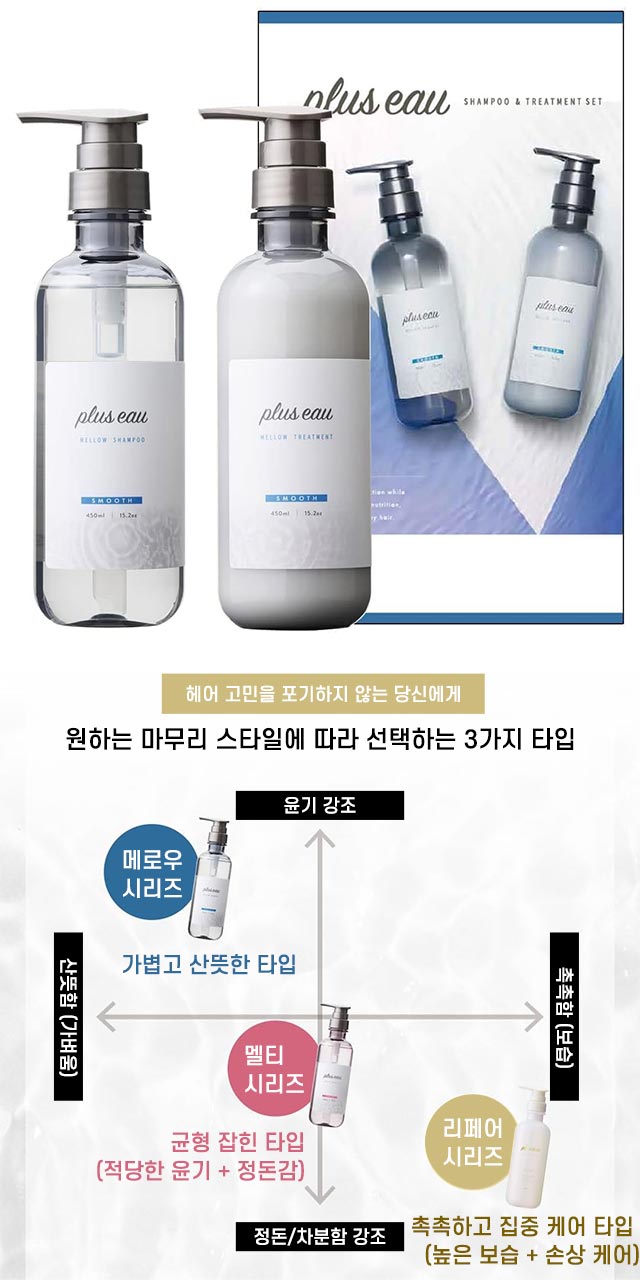 부드럽게 녹아드는 텍스처로 손상된 모발을 케어하여, 엉킴 없이 매끄럽고 윤기 나는 머릿결로 정돈해주는 헤어 트리트먼트입니다. 🔹 상세 정보 ・내용량: 450ml ・품목명: 트리트먼트 (린스) ・원재료: 정제수, 아미노산계 세정 성분, 실크, 케라틴, 세라마이드, 히알루론산, 식물성 오일 등 ・원산지: 일본 🔹 보관방법 ・직사광선을 피해 보관하세요 ・고온 및 저온 환경을 피해주세요 ・어린이 손이 닿지 않는 곳에 보관하세요 ・습기가 적은 곳에 보관하세요 🔹사용방법 ・적당량을 덜어 충분히 거품을 냅니다 ・모발과 두피를 부드럽게 마사지하며 세정 ・미온수로 깨끗하게 헹궈주세요 🔹 정보 ・스무스 타입 – 가볍고 부드럽게 정돈되는 산뜻한 마무리 → 끈적임 없이 차분하게 정리되는 실키한 사용감 🔹 특징 ・나노 세라마이드 + 히알루론산 2종으로 보습 & 윤기 케어 ・실크 성분 & 케라틴으로 손상 모발 집중 보수 ・부스스하고 퍼지는 머리를 차분하게 정돈 ・끝까지 부드럽게 떨어지는 실키한 머릿결 완성 ・고급스럽고 은은한 화이트 플로럴 & 페어 향 ⚠️ 주의사항 ・피부 이상이 있을 경우 사용을 중지하세요 ・눈에 들어가지 않도록 주의하세요 ・이상 증상 발생 시 전문의 상담 권장 ・고온, 직사광선을 피해 보관하세요