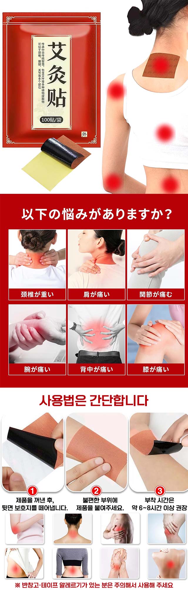붙이기만 하면 따뜻하게! 쑥과 생강 성분의 자가 발열로 몸을 부드럽게 데워주는 대용량 온열 패치입니다. 🔹 상세 정보 ・내용량: 50매 ・품목명: 온열 패치(붙이는 뜸) ・패키지 크기: 약 19.7 × 15.2 × 2.4 cm ・원재료: 쑥, 생강 등 한방 성분 🔹기능·용도 ・신체 여러 부위에 부착 가능