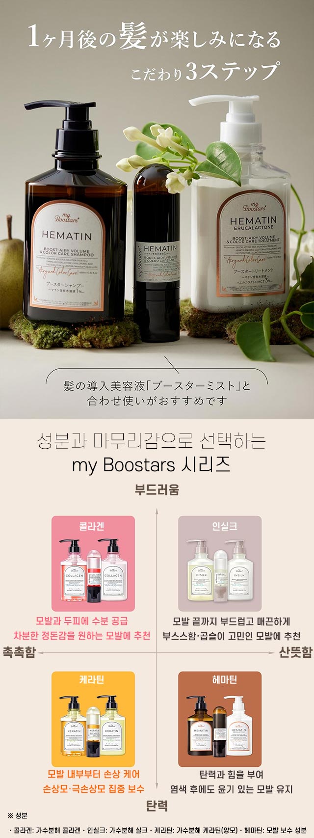 home > 뷰티/화장품 > 헤어/두피/육모 > 샴푸/트리트먼트 > 마이부스터즈 헤마틴 샴푸 400ml [에어리 & 컬러케어]
