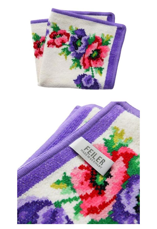 페일러FEILER 손수건 타월 포피스 화이트 워시클로스 핸드타월 30×30cm 퍼플-52 F166