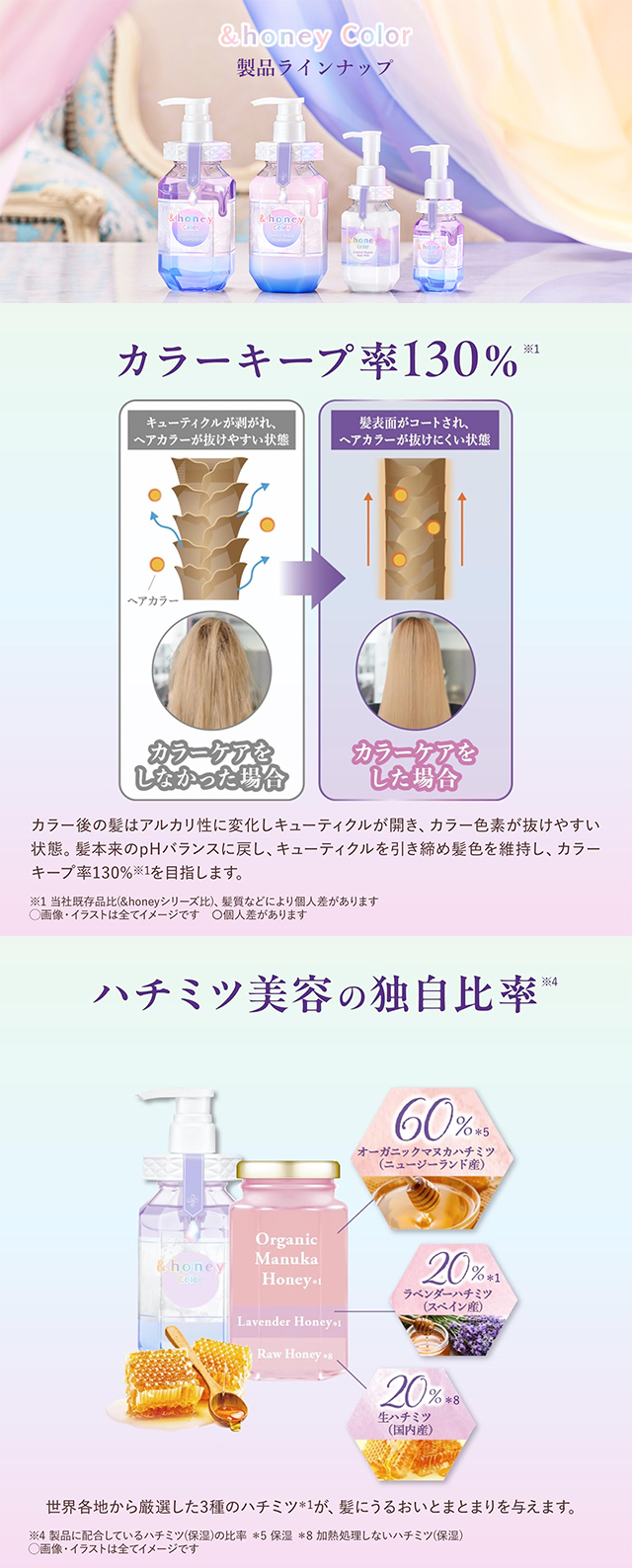 꿀 성분 기반의 보습 케어와 컬러 유지 기능을 동시에 잡은 컬러 전용 샴푸입니다.