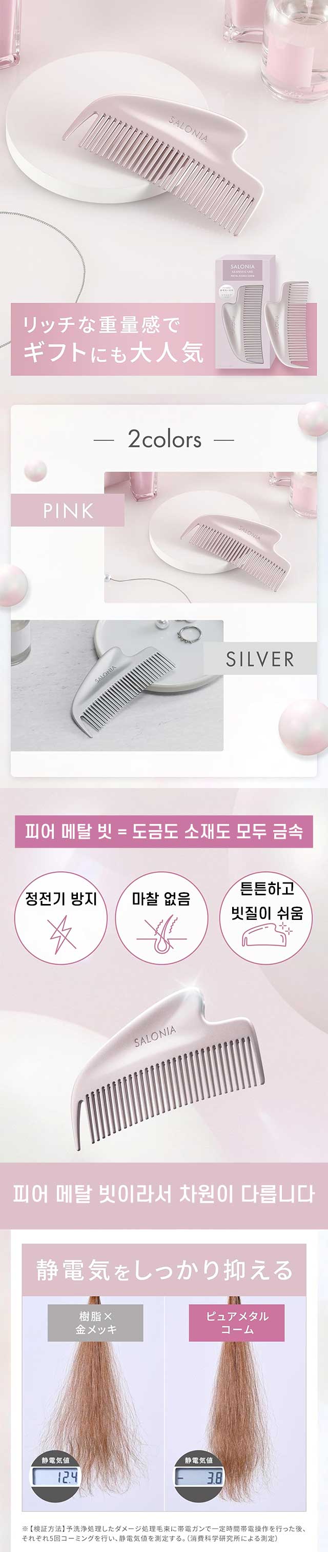 정전기 없이 부드럽게 빗어주는 피어 메탈 빗으로, 외출 중에도 윤기 있고 정돈된 헤어를 완성해주는 프리미엄 헤어 케어 아이템 🔹 상세 정보 ・내용량: 1개 ・품목명: 헤어용 빗 ・원재료: 금속