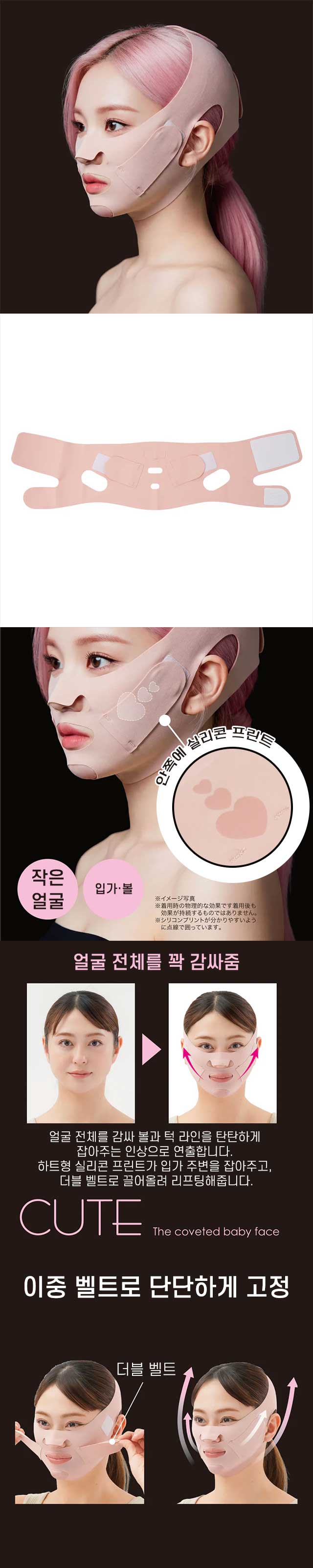 집에서도 간편하게 사용할 수 있는 데일리 페이스 케어 아이템으로, 착용만으로 얼굴 전체를 탄탄하게 잡아주는 소두 벨트입니다. 얼굴 전체를 꽉 잡아주어 귀엽고 어려 보이는 베이비 페이스 연출을 도와주는 큐트 타입입니다. 🔹 상세 정보 ・내용량: 패스 ・품목명: 페이스 리프팅 밴드 ・패키지 크기: 약 두께 0.2 × 가로 57.5 × 세로 10.5 cm ・원재료: 나일론, 폴리우레탄, 실리콘 고무 등