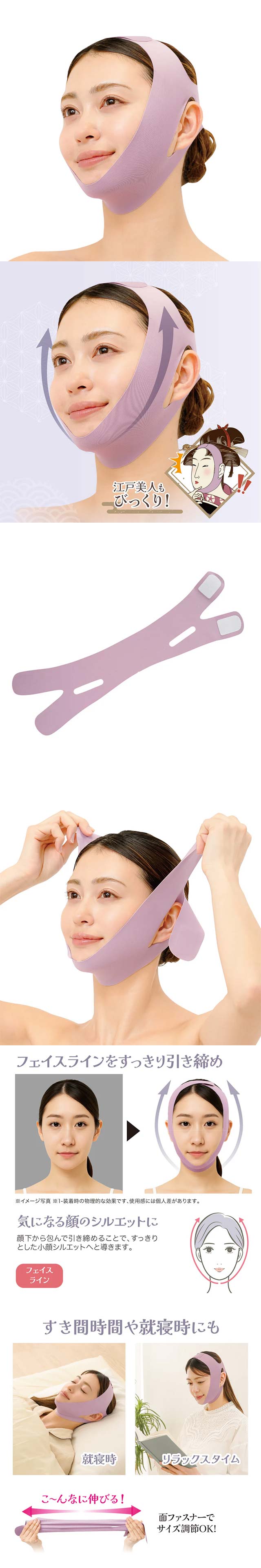 🔹 특징 ・얼굴 아래부터 페이스라인 집중 리프팅 ・신축성 있는 소재로 편안한 밀착감 ・무봉제 구조로 피부 자국 최소화 ・간편 착용으로 취침 중에도 사용 가능